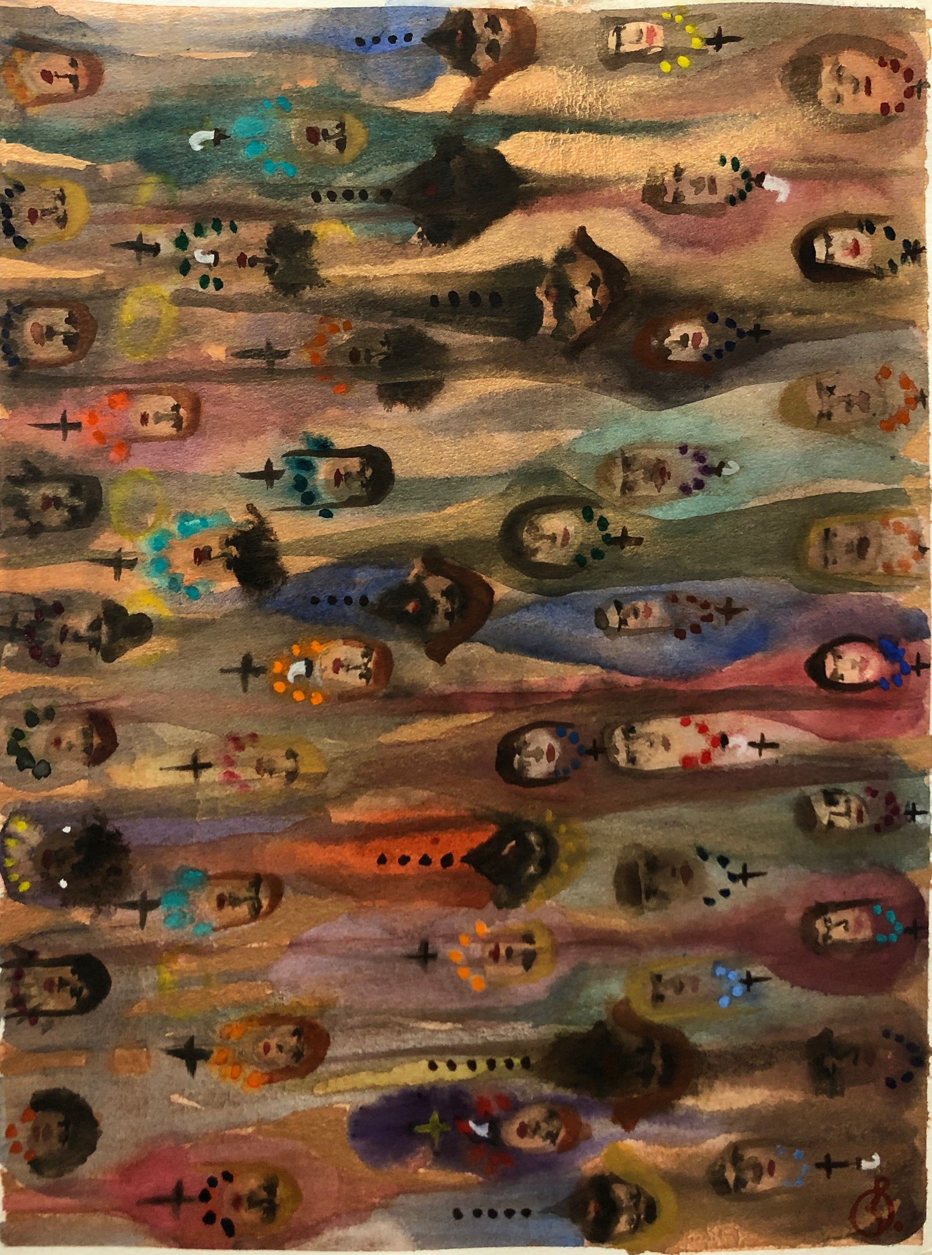 trabalho inspirado nos textos de Os Serões, de Euclides da Cunha. Aquarela, guache bronze, extrato de Nogueira sobre papel, 40x30cm