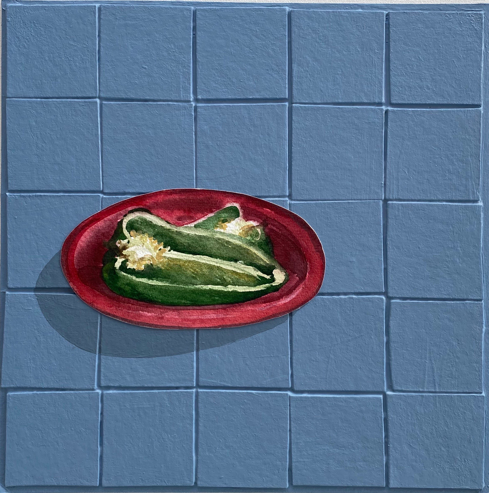 Pimentão Verde, 2021. Aquarela e acrílico sobre papel cartão, 27cm x27cm