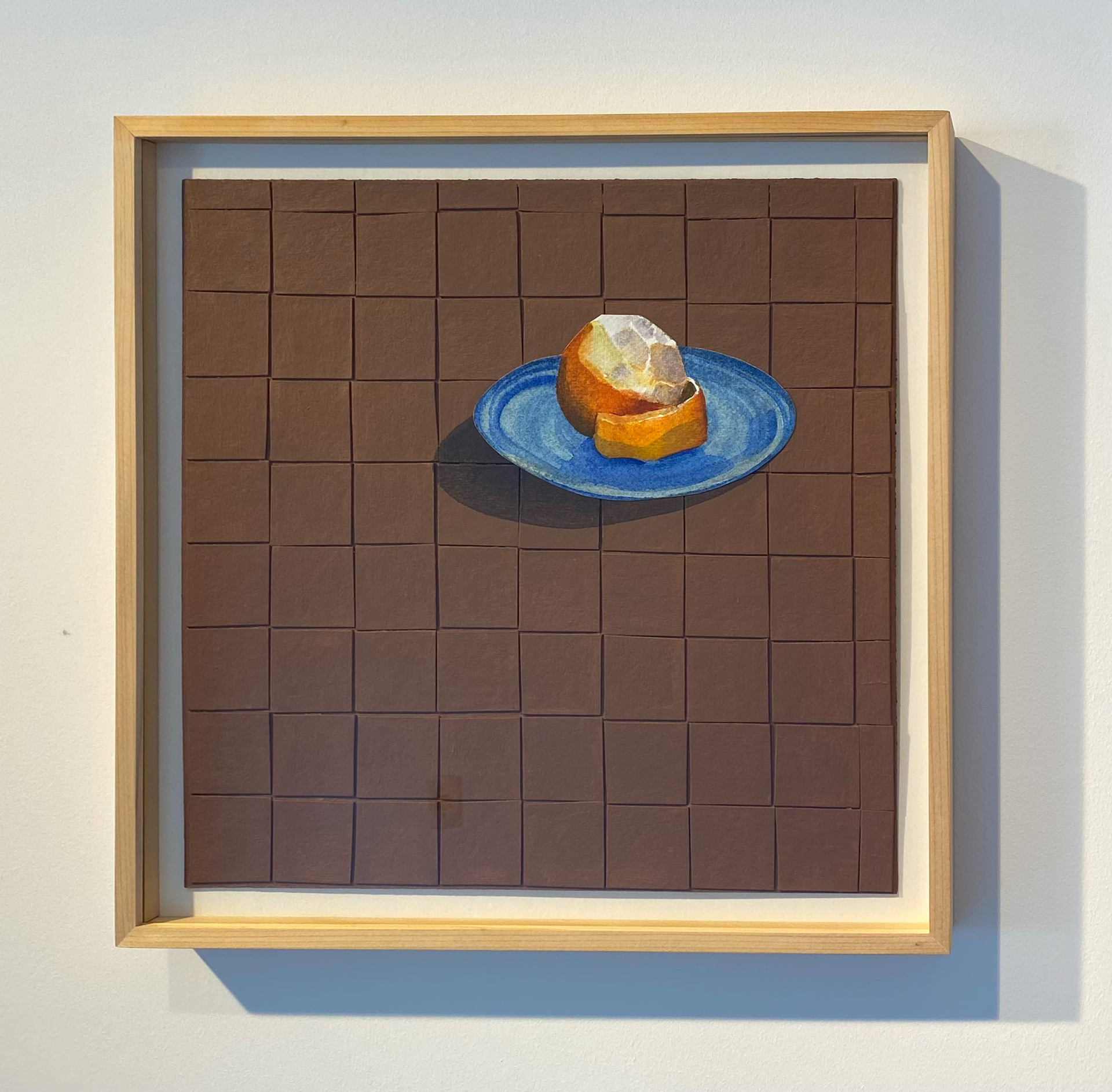 Meia Laranja, 2020. Aquarela e acrílico sobre papel cartão, 40cm x 40cm, com moldura madeira natural e vidro