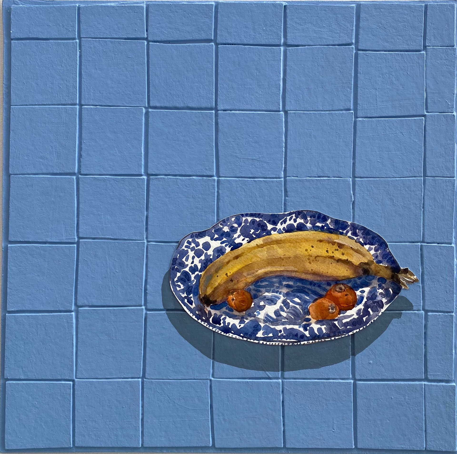 Banana e Coquinhos, 2021. Aquarela e acrílico sobre papel cartão, 35cm x 35cm