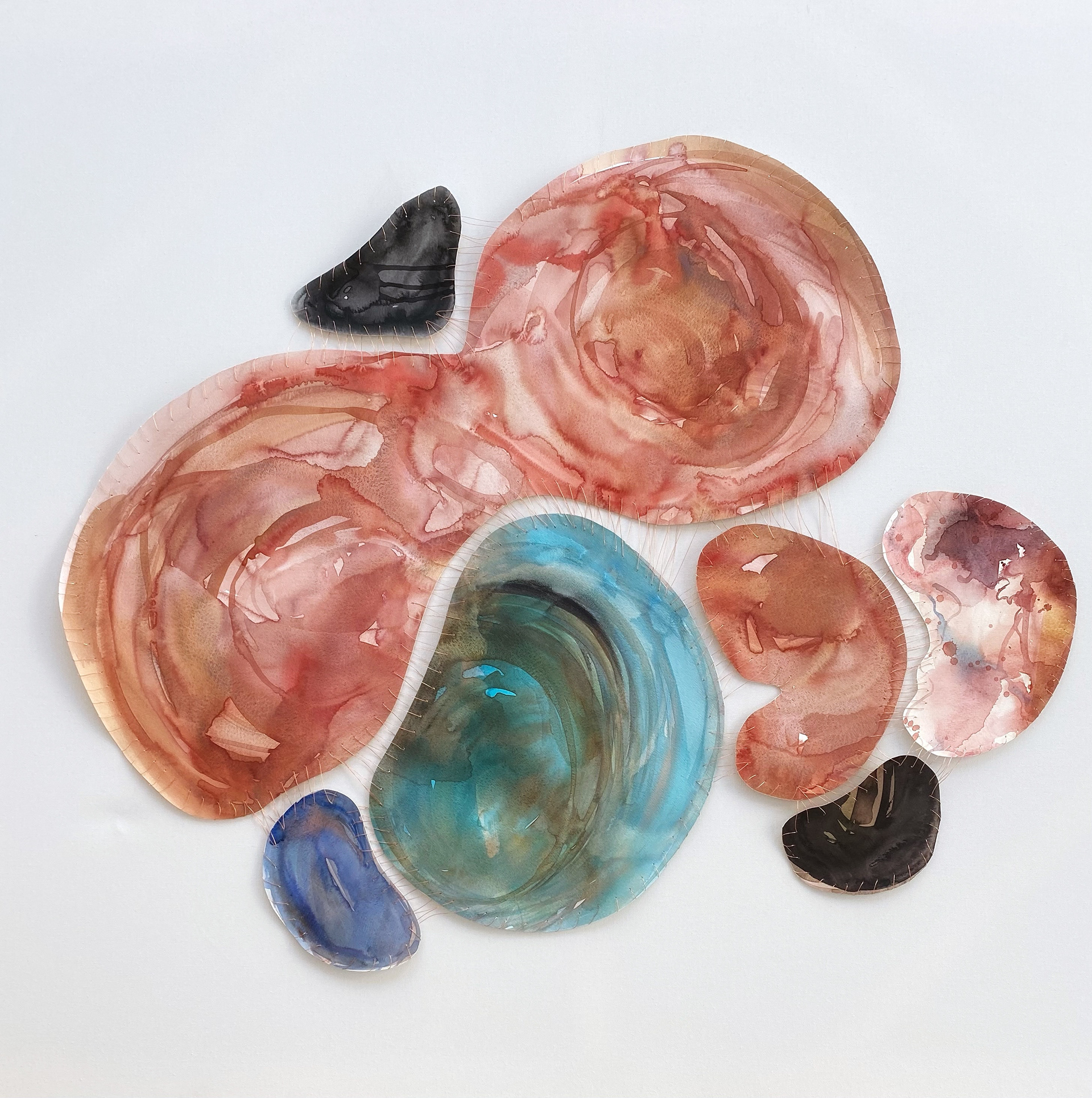 Aquarela sobre papel, cobre e fio de cobre. Tamanhos variados